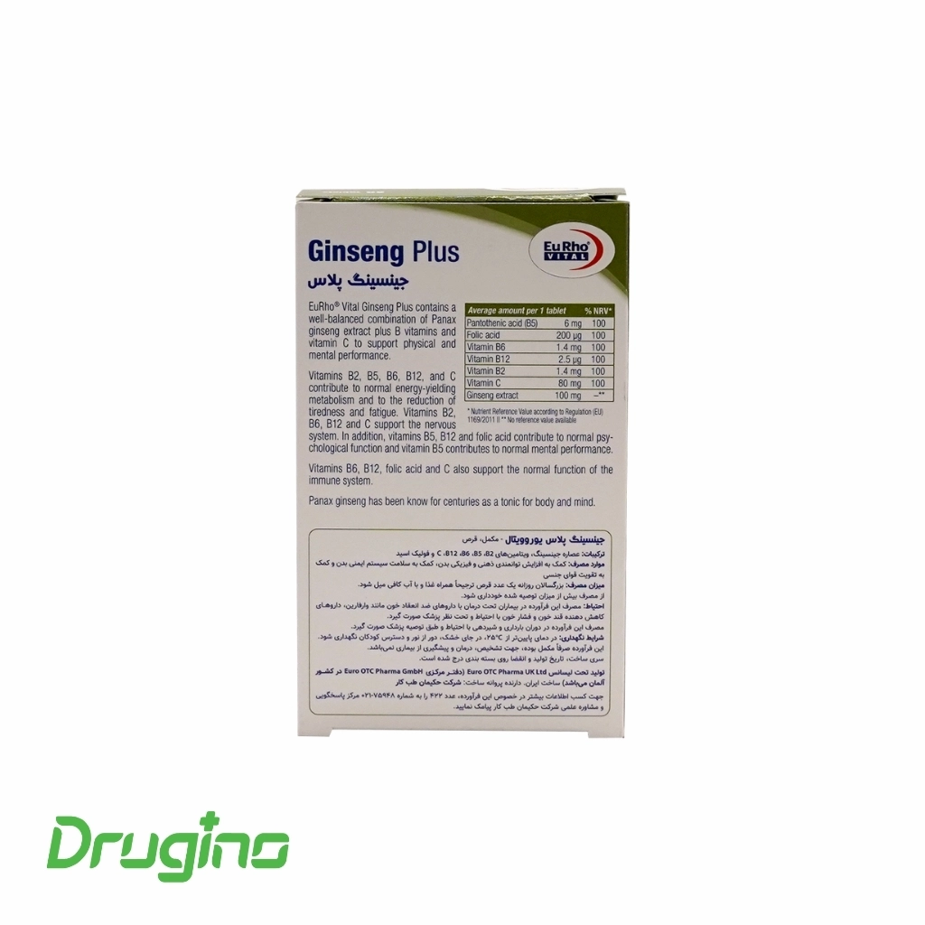 قرص جینسینگ پلاس یوروویتال (Eurho Vital Ginseng Plus) ترکیبی قدرتمند از عصاره خالص جینسینگ، ویتامینهای گروه B و مواد معدنی ضروری مانند زینک و منیزیم است که با هم به تقویت عملکرد کلی بدن کمک میکنند.