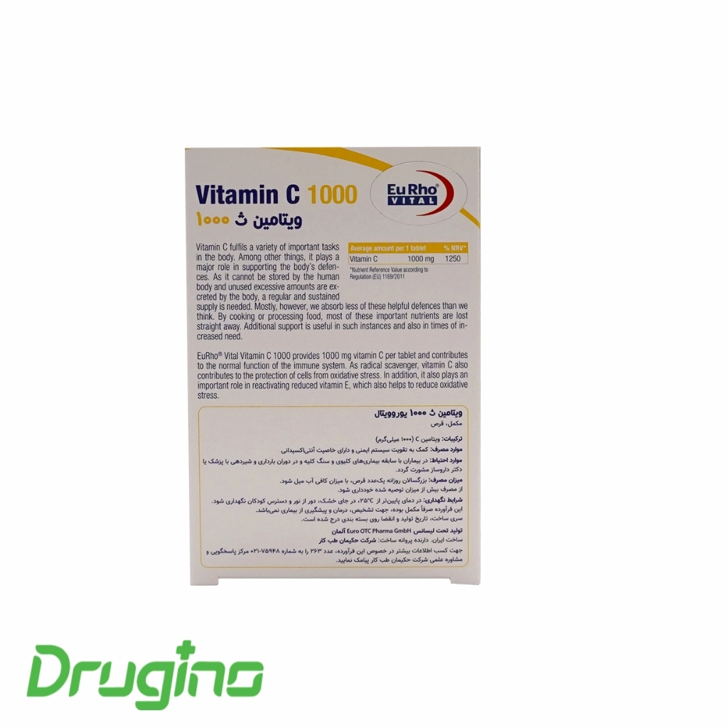 قرص ویتامین ث یوروویتال 1000 میلی گرم (Eurho Vital Vitamin C 1000 mg) | تقویت ایمنی، پوست و انرژی بدن