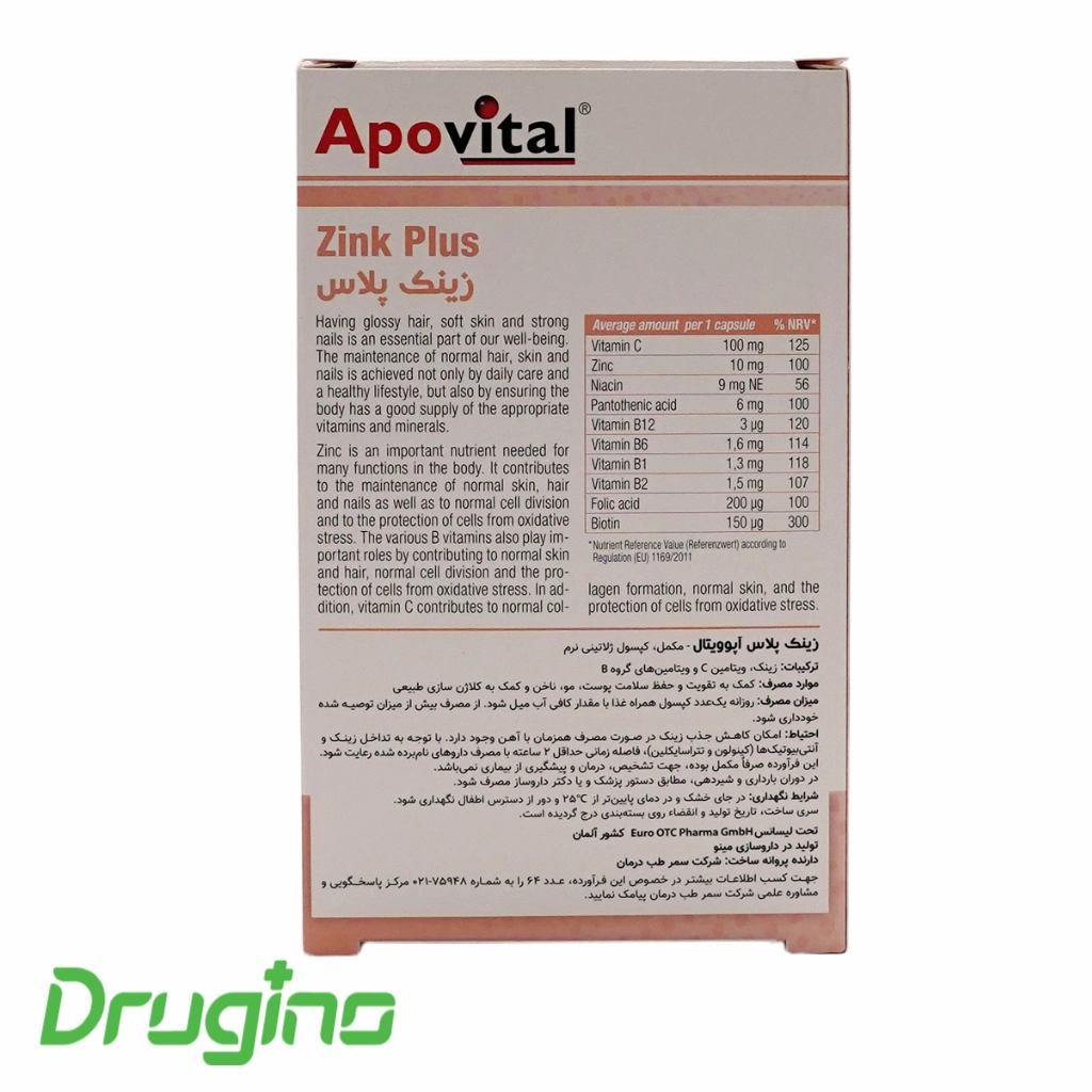 تقویت پوست، مو و ناخن با دوز مؤثر زینک: کپسول زینک پلاس آپوویتال ۴۰ عددی